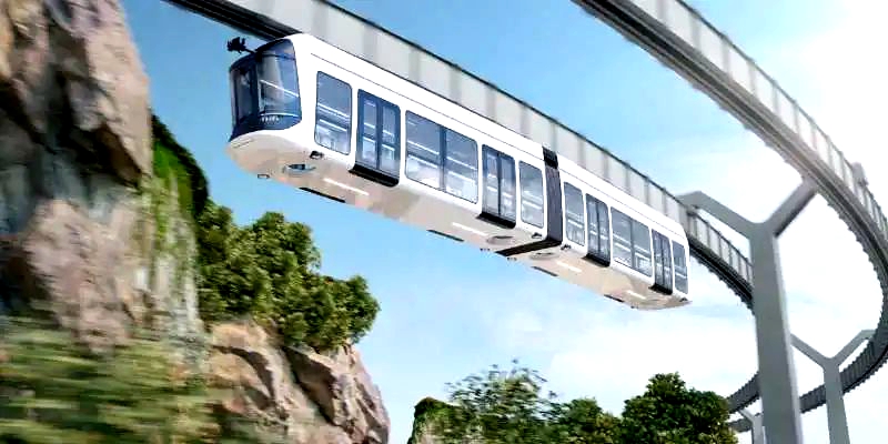“空轨”列车即悬挂式单轨列车,轨道在列车上方,由钢铁或水泥立柱支撑在空中,占地少、视野开阔、建设周期短、编组灵活,具有独特优势。湖北恩施青云崖旅游观光线项目既是青云崖度假区内的重要基础设施,也是旅游观光设施,串联了度假区内的主要进出口、特色旅游景点,空中悬挂走行方式将给人们带来全新的乘坐体验。线路全长2.1公里,设车站3座,列车采用2节编组,定员170人。